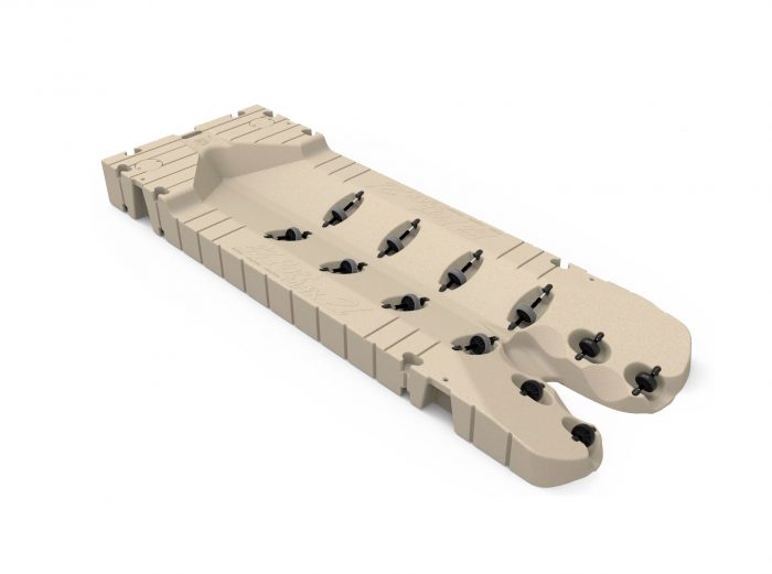 This port offers a single piece design with all the key features of the proven Port MAX system. Featuring an integrated built-in flotation device designed for heavy lifting up to 1700lbs (771kg) with an easy entry and roller system to allow for effortless porting and launching. The EZ Port 2i also features five hand-hold/tie-off points allowing for easy handling and/or mooring. Available in beige (standard) or gray (special order).